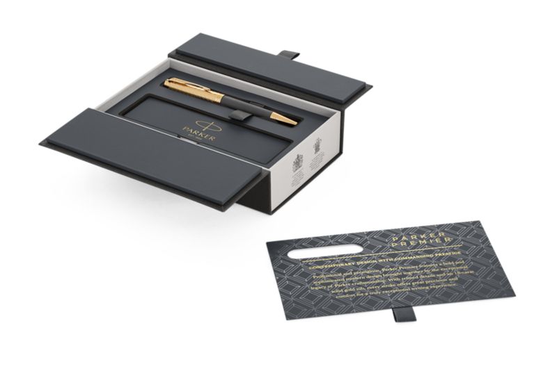 Шариковая ручка Parker Premier Storm Grey GT от официального дилера Parker в Каспийске. Вы можете дополнительно заказать гравировку, которая подчеркнет Вашу оригинальность и придаст памятность статусному подарку. Все ручки Паркер поставляются в фирменном футляре.